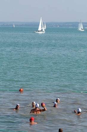 Olimpiai bajnok vízilabdázók játszottak bemutató mérkőzést a Balatonban. A lelátók teljesen megteltek, több mint ezren kísérték figyelemmel a klasszisok megmozdulásait.