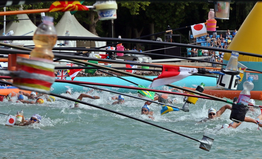 Az úszók a Révész-Halász szobrok előtt felállított stégről rajtoltak, négy, egyenként 2,5 kilométeres kört tettek meg a sétány előtt elterülő vízfelületen. A Világkupa és az azt követő Magyar Úszás Napja eseményeit a Vitorlás téren elhelyezett kivetítőkön is lehetett követni.