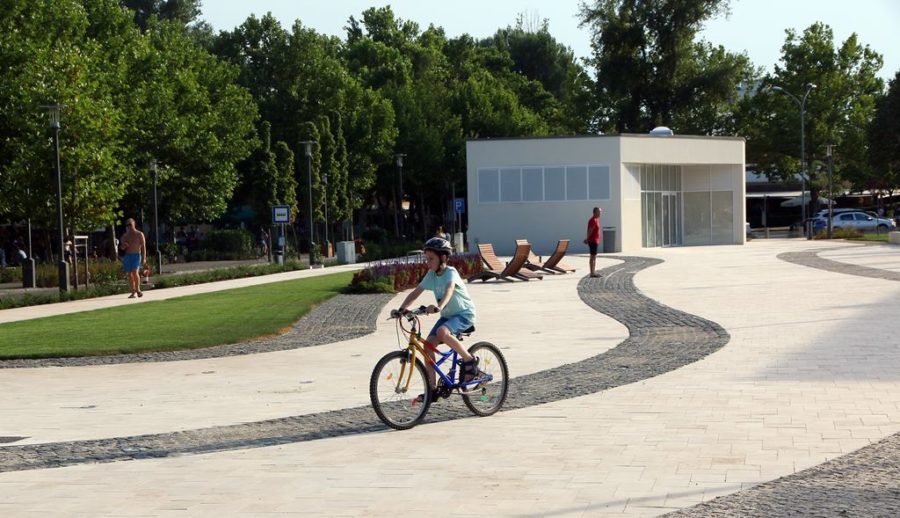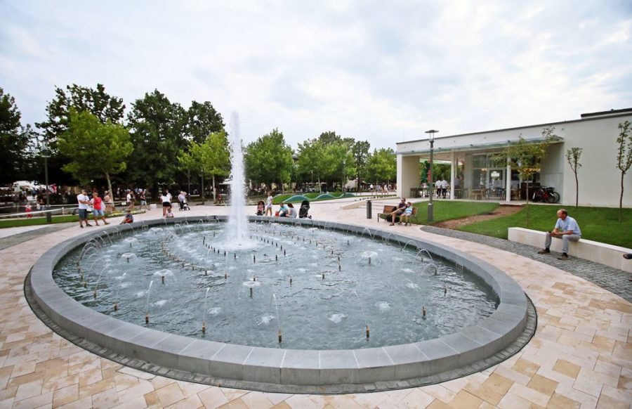 Ott jártunkkor épp az ellipszis alakú látvány-szökőkút próbaüzeme zajlott. A különleges alakú, feszített víztükrű, országos szinten is nagynak számító szökőkút várhatóan újabb látványossága lesz a városnak.