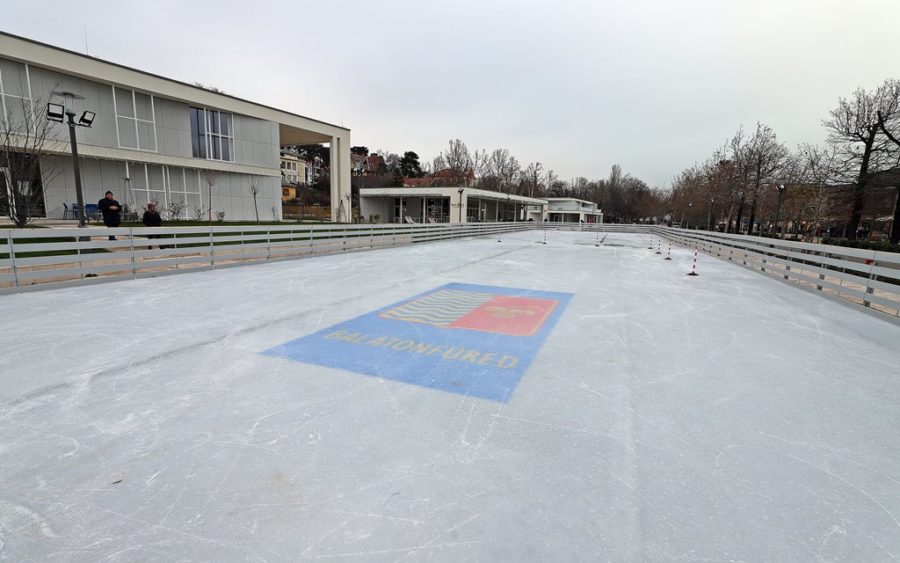 A téren, ha a hőmérséklet 10 C° fok alá süllyed, még korcsolyázni is lehet. A mesterségesen kialakított műjégpálya a téli forgalmat erősíti. A biztonságosan kétszáz korcsolyázó befogadására alkalmas 900 nm2 felületű pálya igazi közösségi tér, kiváló program az egész családnak. A tíz centiméter vastagságú jég a korcsolyakölcsönzővel, az esti kivilágítás igazi téli szórakozás helyieknek és az idelátogató vendégeknek egyaránt. A parkban a mobil utcabútorok miatt az energiatakarékos AST Ice-Mat Area Classic jégpálya minden évben gazdaságosan újraépíthető. 2019. dec. 23. és 2020. február 23-a között 16.849 látogatót regisztráltak a műjégpályán.