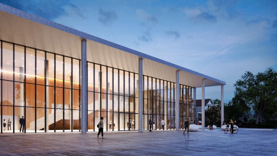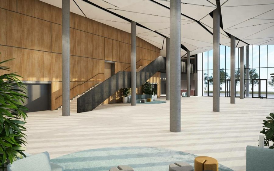 Az előcsarnokhoz kétoldalt szimmetrikusan elhelyezkedő ruhatárak és vizesblokkok kapcsolódnak. Az épület alatti közparkolónak a 71-es út felől lesz a bejárata.