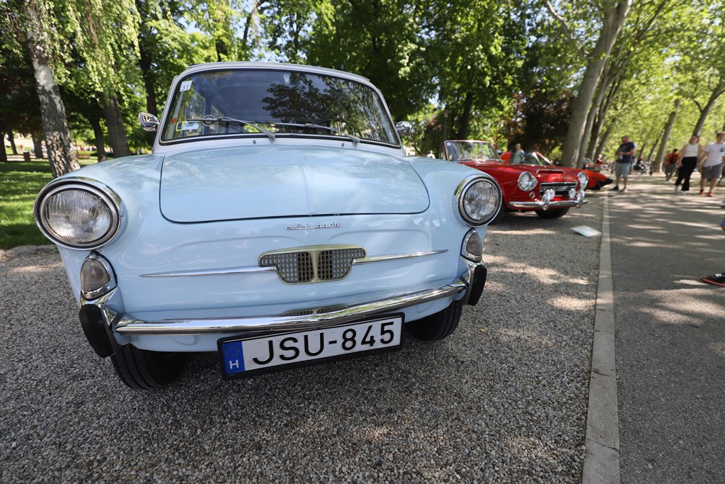 A Tagore sétányon kiállított járművek között lépni is alig lehetett, akkora volt az érdeklődés. Felnyitott motorháztetők, közös fényképezkedés a tulajdonossal, alkatrészek mustrája, szebbnél szebb emblémák.