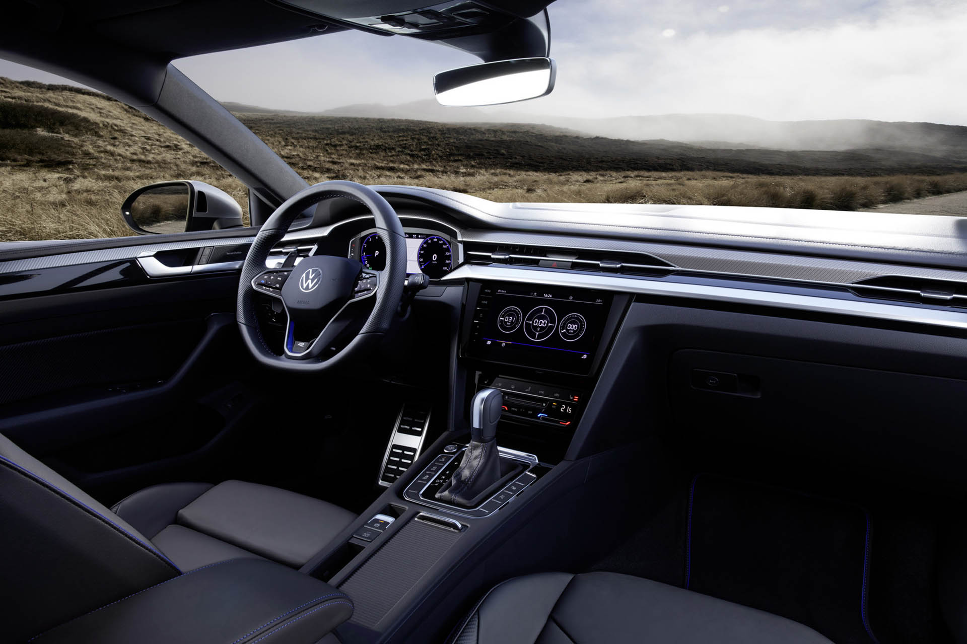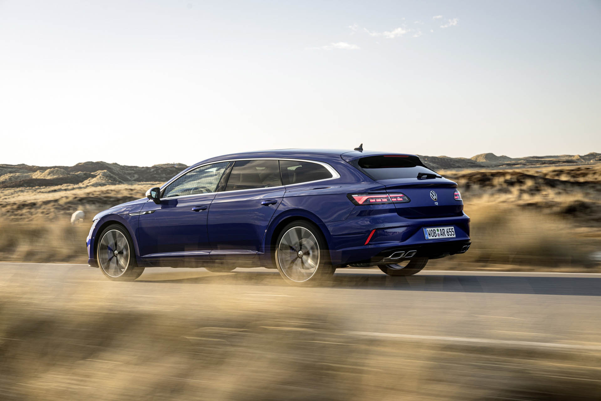 A szuperelegáns, mégis kellően dinamikus és erőteljes Arteon SB R 20 colos Estoril felniken rója a kilométereket, miközben négy kipufogóvég kürtöli világgá, hogy 320 tagú ménes tombol az összkerekes életmód-kombi gépházteteje alatt. A hatalmas légbeömlők ugyancsak a nyújtott és lapos karosszéria sportosságát hangsúlyozzák, naná, hiszen az Arteon SB R akár 270 km/h-s tempóval is képes száguldani a német autópályákon. Durva!