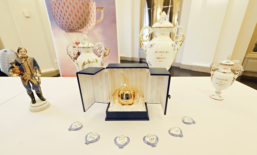 – A báli szív ezúttal babakék színű lesz. Megújítottuk a báli szépek herendi porcelán serlegeit is, a Viktória minta eddig nem látott kivitelben, az Apponyi minta új zöld színben, a Rothschild pedig megújított mintával készült el – így dr. Simon Attila, a Herendi Porcelánmanufaktúra Zrt. vezérigazgatója, aki hozzátette: a vendégek elé 3300 darabos, mintegy száztíz millió forint összértékű, az 1930-as évekig visszanyúló Apponyi motívumokkal díszített szerviz kerül.