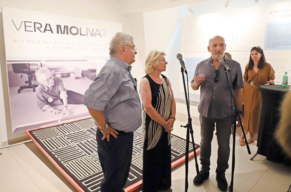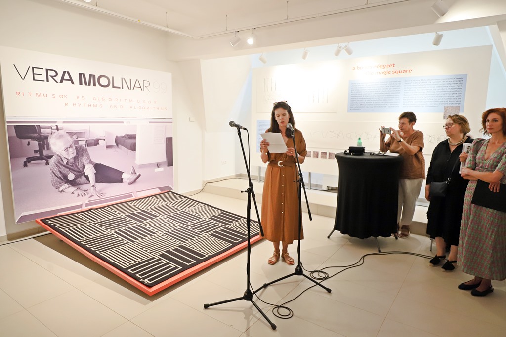 – Vera Molnárnál a vonal egy végtelen gondolatfolyam, megállíthatatlan gondolatvezetés. Vonalai belülről fakadónak tűnnek. Sorozatai formai lehetőségek. A meghatározott szabályok szerint működő program által generált képek az alapelemek arányának apró változtatásaiból, Vera Molnar szavaival: 1 százalék rendetlenség hozzáadásával adódnak. Művészetében a felfedezésen van a hangsúly, a véletlen és a struktúra, a rend és a rendetlenség együtt van jelen a műveiben, amelyek közelebb visznek minket az elképzelhetetlenhez – fogalmazott a tárlat megnyitóján Kumin Mónika művészettörténész.
