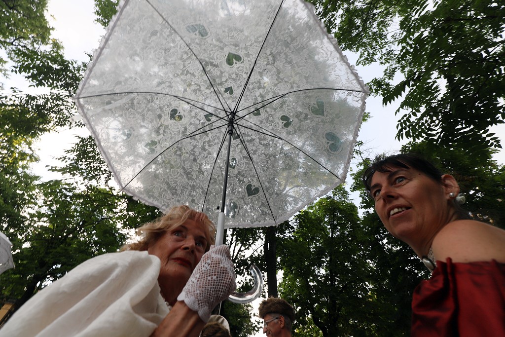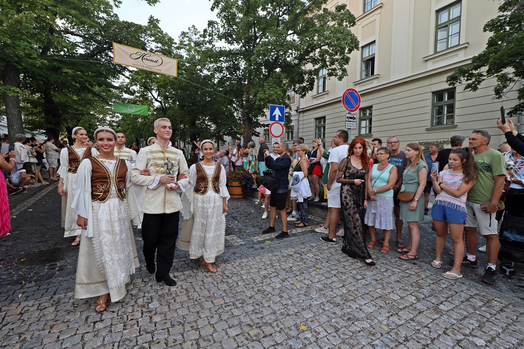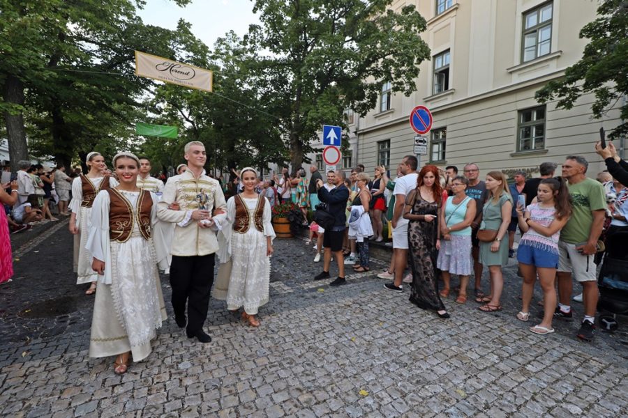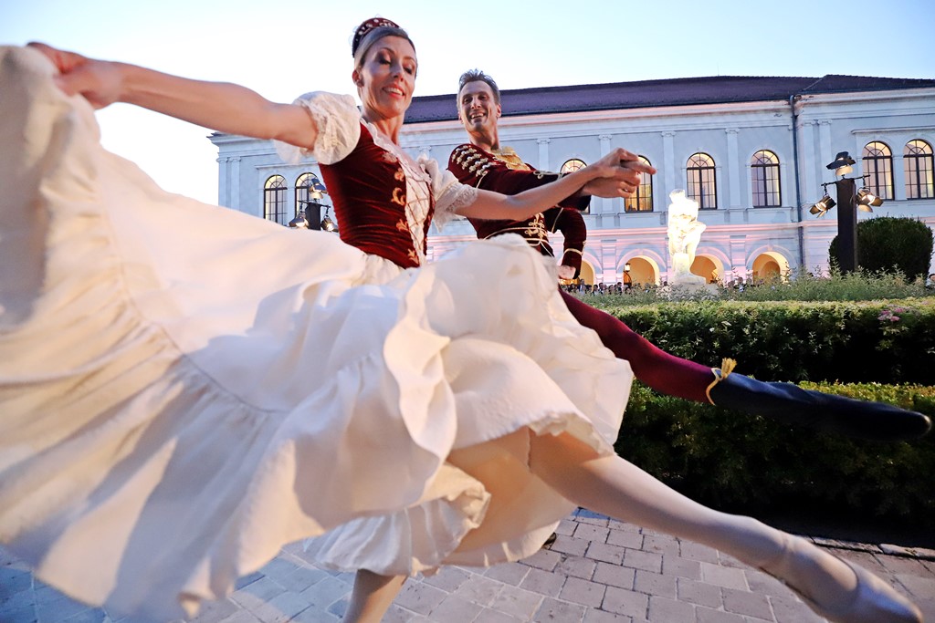 A bál szépe és udvarhölgyei vasárnap délelőtt 10.45-kor láthatók a Kisfaludy Színpadon, majd lovashuszár kísérettel sétakocsikáznak a városban.
