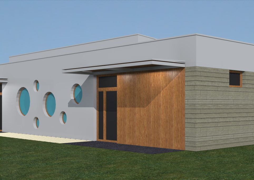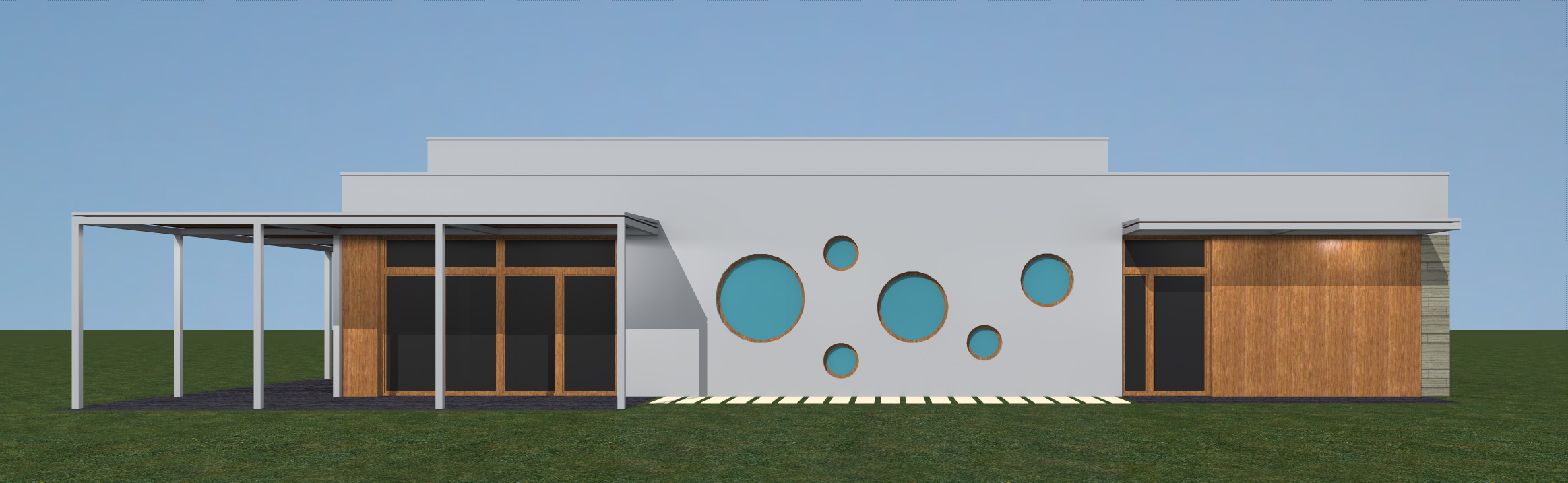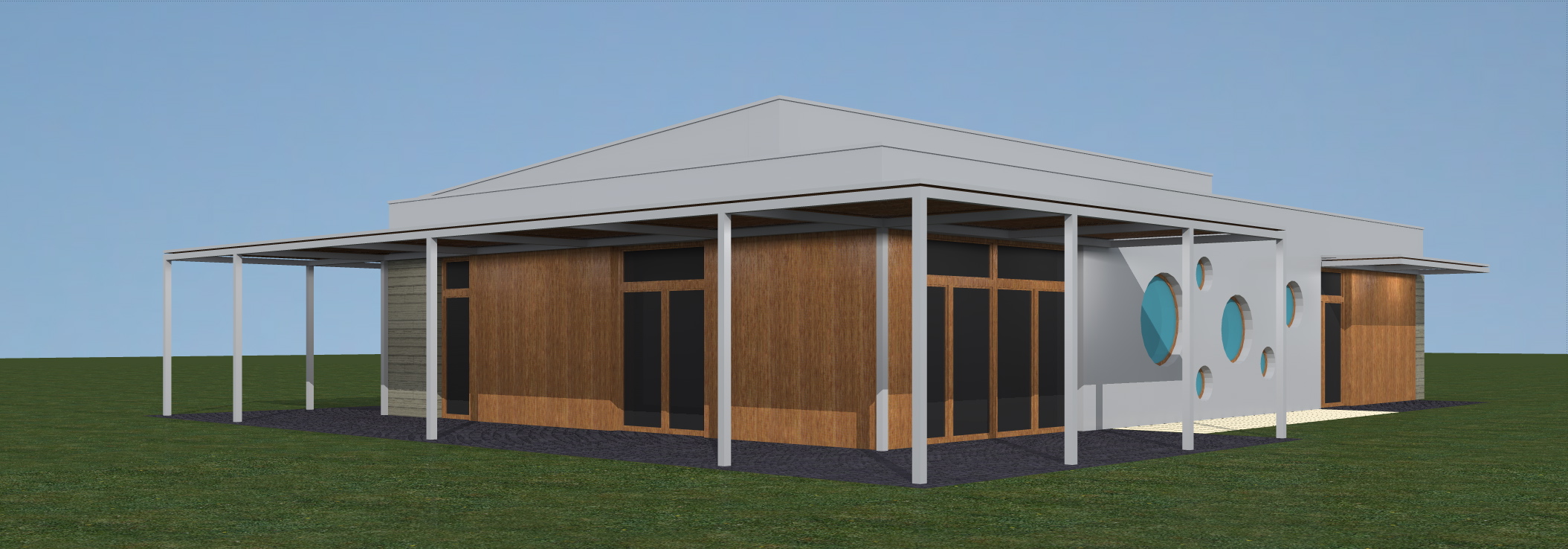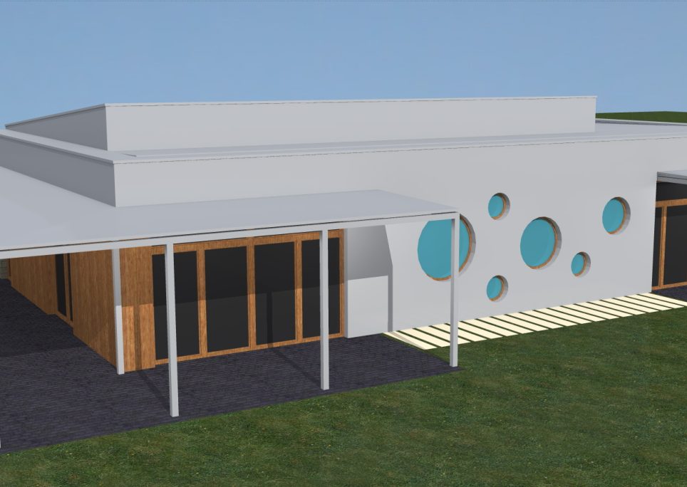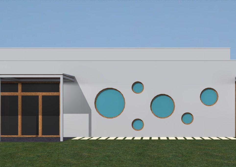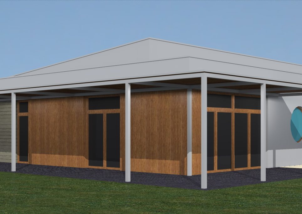 A három részre tagolt alaprajzú új lapostetős épület első részében lesz a szervíz és közösségi tér, a középsőben az iroda, pihenő és tárolók, míg a harmadikban a vizesblokkok kapnak majd helyet. Az új épület tömegében egységes lesz, és majdnem teljesen körben fedett tornác veszi körül.