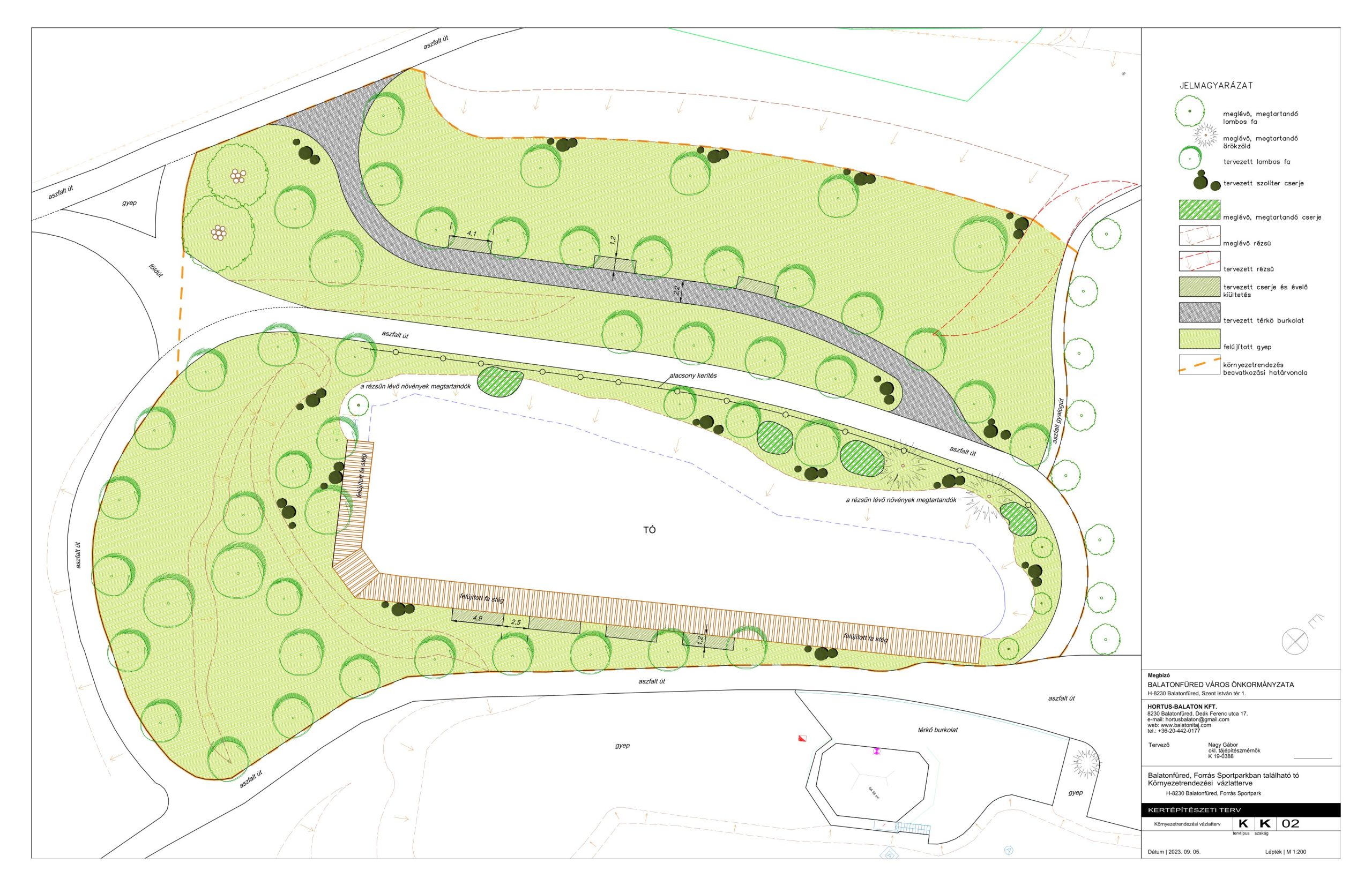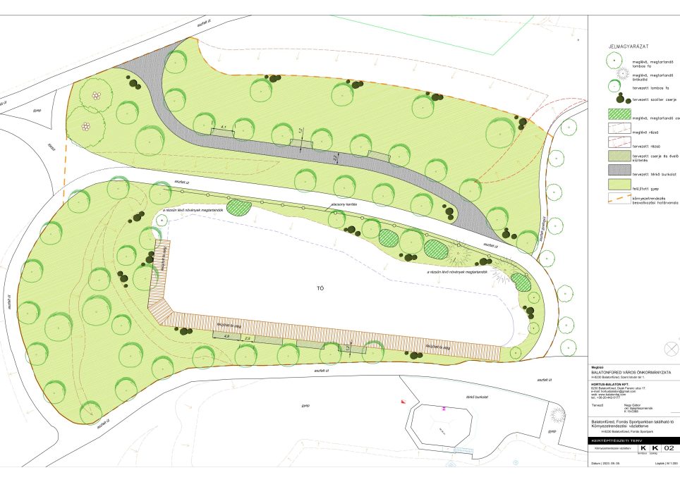 A területrendezés része a zöldfelület szükséges megújítása, aminek keretében a pályázati támogatásnak köszönhetően kialakítanak egy kis tavat. A zöldítés jegyében a terv szerint 49 fát és cserjéket ültetnek az új kerékpáros központnál.