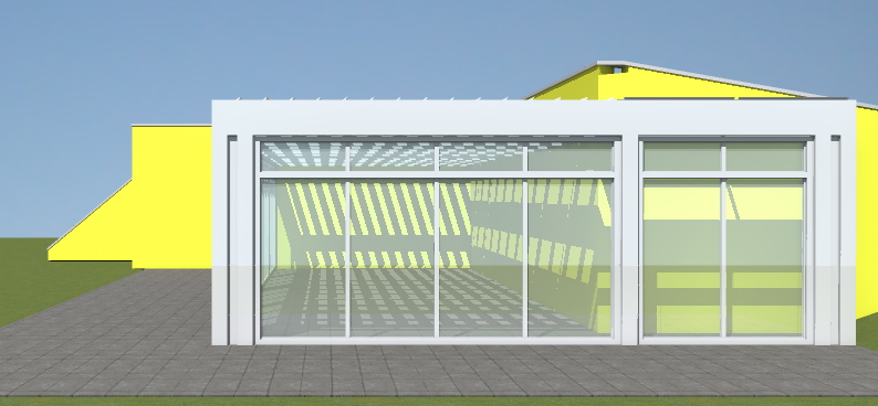 A fejlesztés keretében lefedik a síház pergoláját is. A meglévő faszerkezetre kerül fel egy fehér színű elforgatható, alumínium lamellás hóálló bioklimatikus pergola, távirányítós vezérléssel. A pillérek közé alumínium szerkezetű új nyílászárók készülnek, szintén fehér színben. A támogatásnak köszönhetően lefedik a teniszház épületénél lévő tölgy színű fa pergolát is.