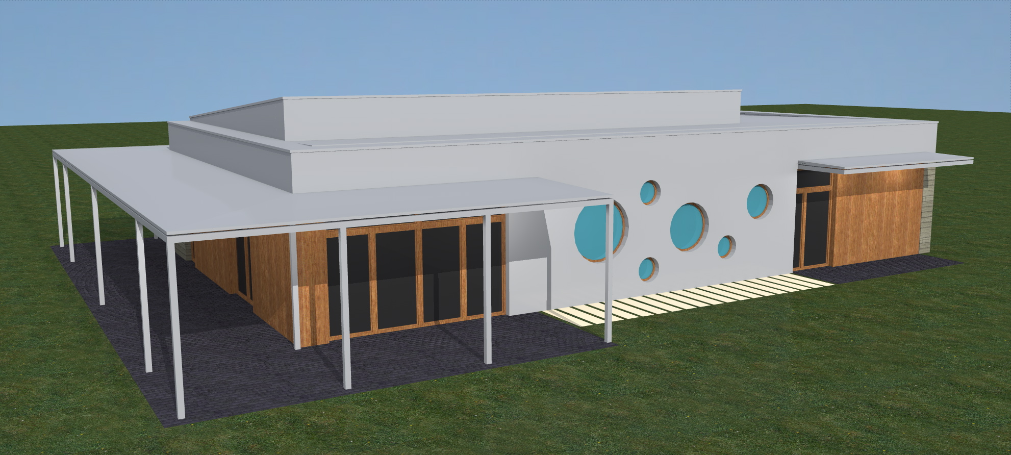 A pályázatnak köszönhetően megépítenek egy sokak által várt és szorgalmazott új épületet, ami a helyi kerékpáros turizmus igényeit szolgálja majd. A földszintes kerékpáros fogadóépületben (címlapkép) pihenésre, szervizelésre alkalmas helyiségeket valamint a különböző rendezvények kiszolgálásához szükséges igényes vizesblokkokat alakítanak ki. A három részre tagolt új lapos tetős épület első részében lesz a szerviz és közösségi tér, a középsőben az iroda, a pihenő és a tárolók, míg a harmadikban a vizesblokkok kapnak majd helyet. Az épületet majdnem teljes egészében fedett tornác veszi majd körül.