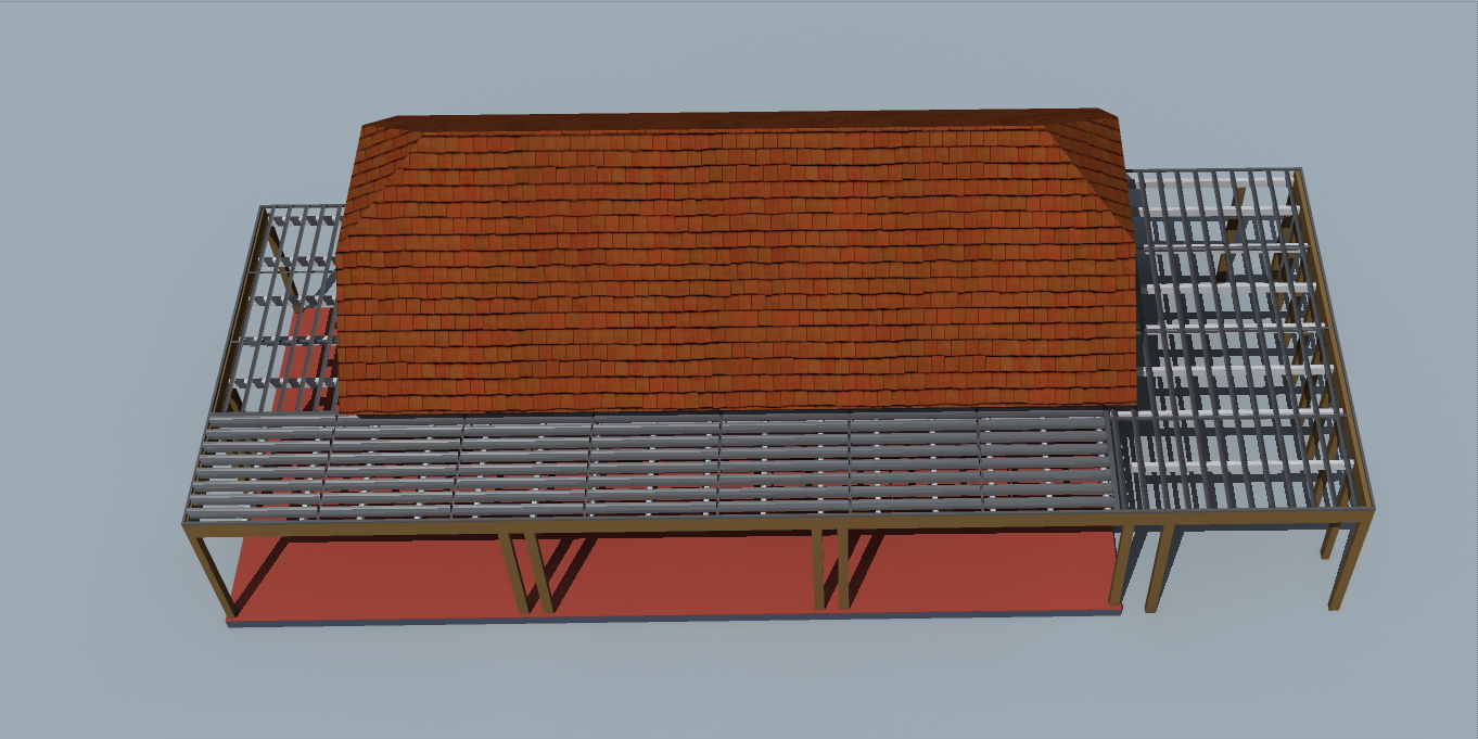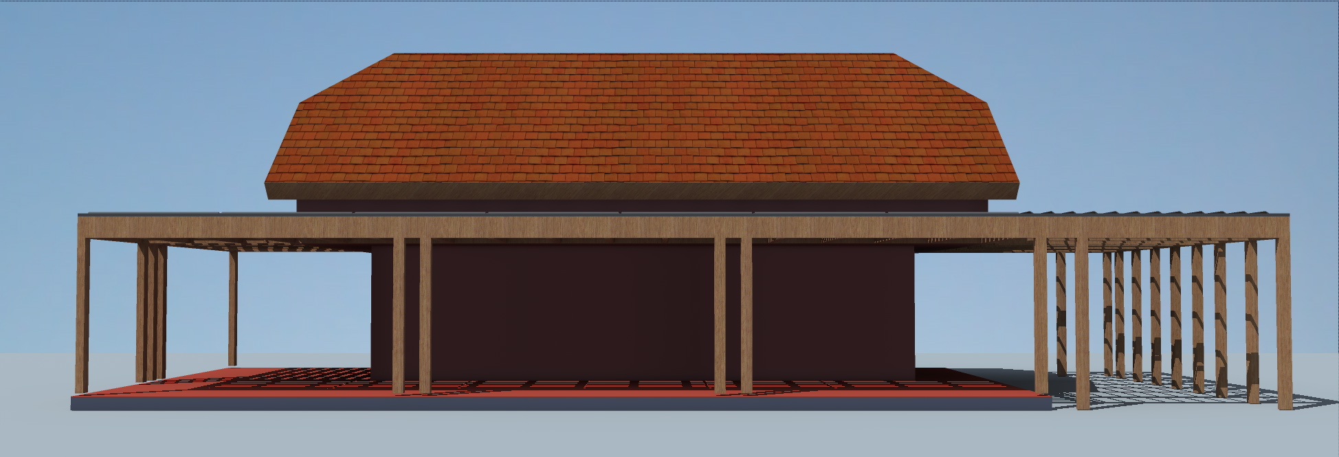 Szintén a támogatás révén lefedik a teniszház épületénél lévő tölgy színű fa pergolát is.
