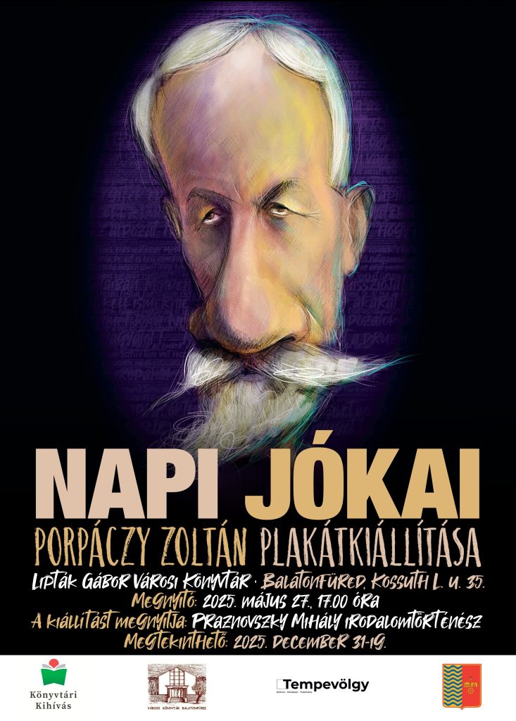 Napi Jókai címmel Porpáczy Zoltán grafikai sorozata látható május 27-től egészen az év végéig a Lipták Gábor Városi Könyvtárban. A több, mint száz autonóm plakát mindegyike egy-egy szemelvényt tartalmaz Jókai Mór szövegeiből és ezekhez különböző felfogású vizuális asszociációkat rendel.