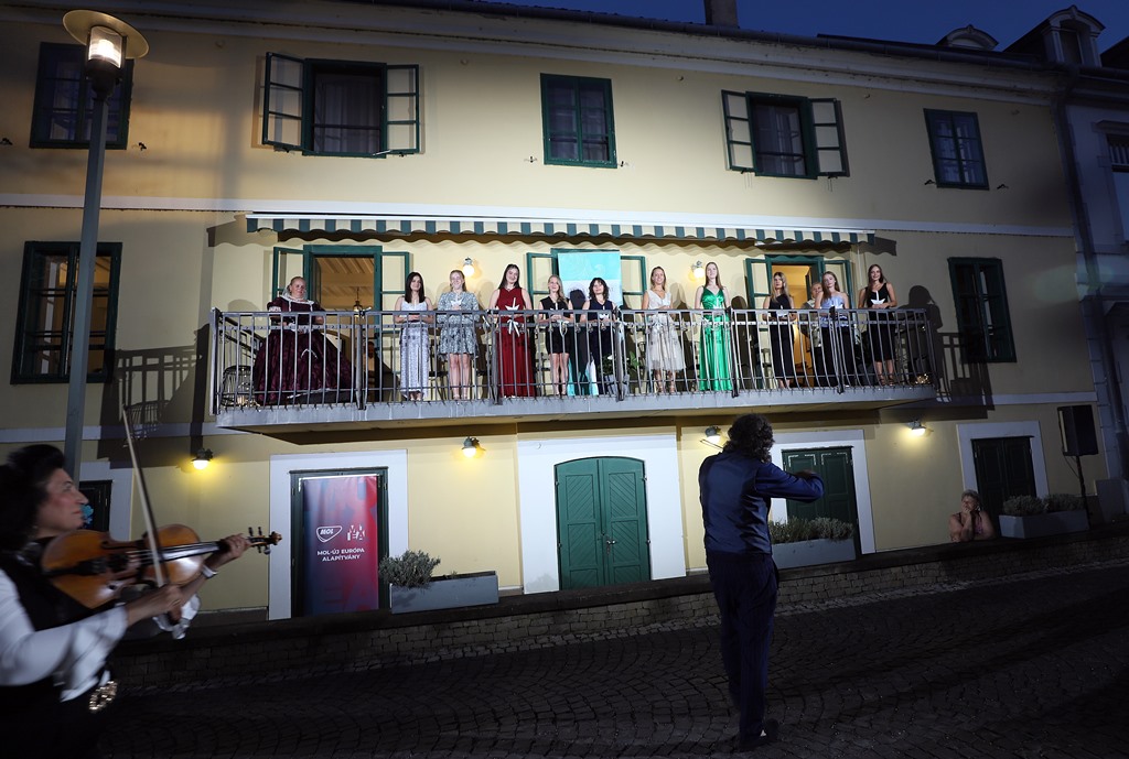 Az elsőbálozók All-Shatti Lili, Czuczai Mercédesz, Dadi Csilla Mercédesz, Dömötör Zsófia Sára, Karli Emma Kata, Kupcsik Jázmin Hanna, Matics Flóra Márta, Rádli Viktória, Ruzsinszky Hanna és Vajai Anna a Blaha utcára nyíló teraszon állva bemutatkoztak a közönségnek majd meghallgatták a nekik szóló szerenádot, amelyet Kalló Zoltán és zenekara játszott.