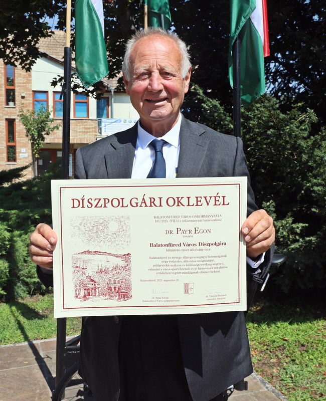 Szintén Balatonfüred díszpolgára címet vehetett át Pay’r Egon klinikus szakállatorvos.