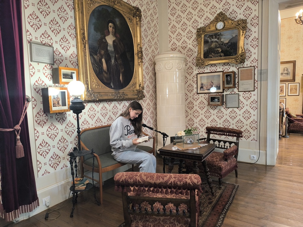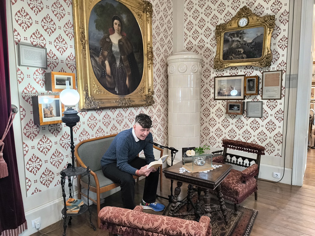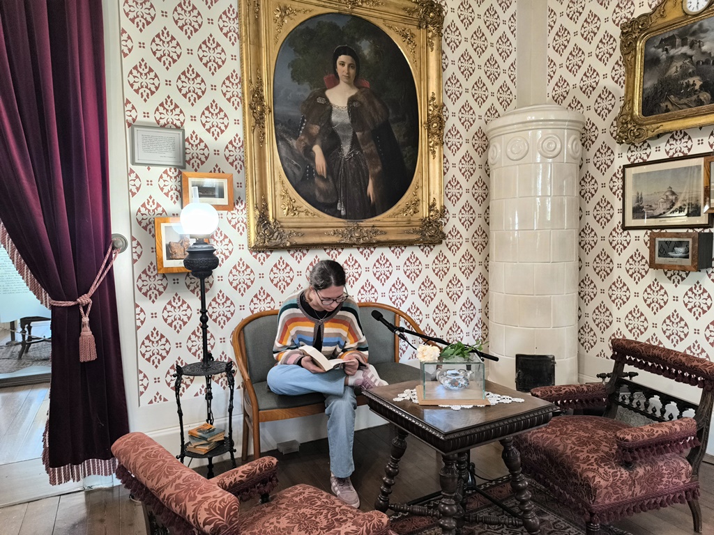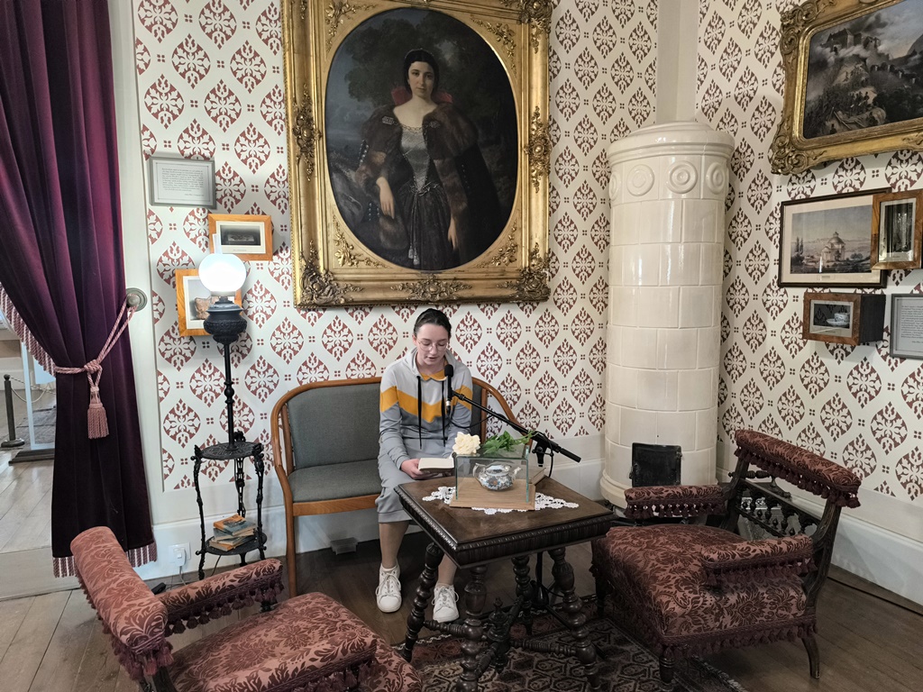 A könyv utolsó oldalait az Eötvös Iskola 6. A osztályos diákjai zárták Hőbe Zoltánné tanárnő vezetésével. Az utolsó sort Burkus Tamara olvasta fel, (képünkön) aki október 10-én, pénteken, 10 óra 30 perckor befejezte a regényt, s ezzel lezárta a Jókai 24 órás felolvasási kihívást.
